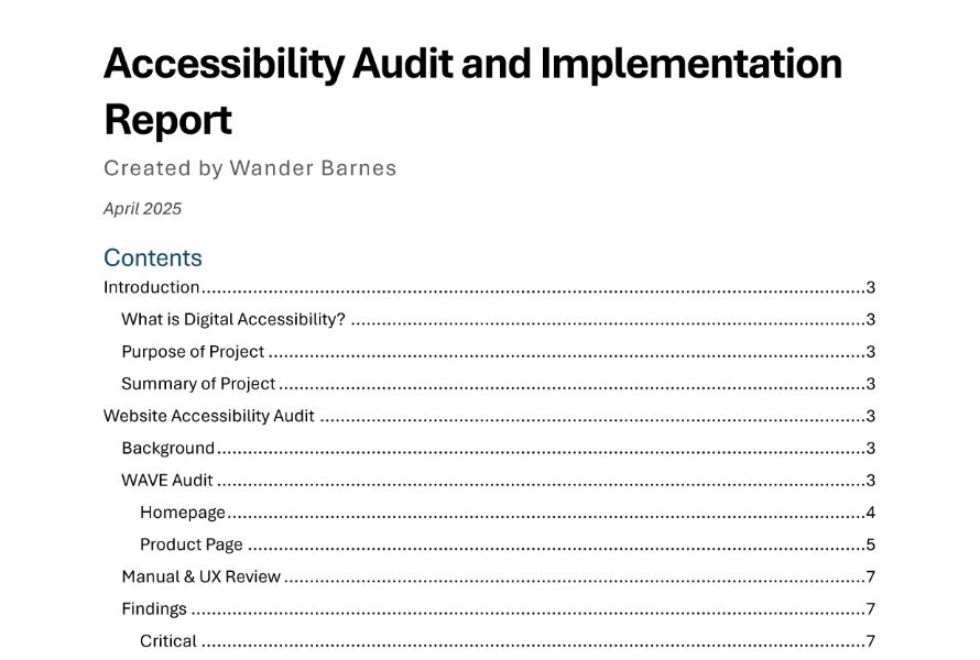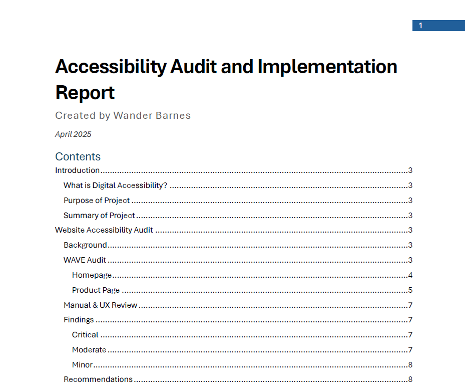 This accessibility report was created as apart of course TCID 4060 "Diversity Topics: AI, Accessibility, and Augmentation". I was tasked with exploring the accessibility of a Live Site as well as a Learning Management System shell. These both illustrated real world accessibility issues.